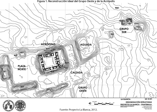 Para la región del sureste de Petén, Laporte (2001: 155) se inclina por considerar los núcleos urbanos de este territorio como ciudades debido a la presencia en ellos de una serie de elementos constitutivos de carácter arquitectónico que estima definitorios para tal categoría, y que son: el conjunto de tipo Grupo E, el conjunto de tipo Acrópolis, el desarrollo de calzadas internas y la existencia de terrenos para el Juego de Pelota, si bien sólo 12 sitios de esta área incluyen estos cuatro elementos. Ante la disparidad de criterios, hemos optado por referirnos a La Blanca como un asentamiento urbano, entendiendo por ello la presencia de una ordenación premeditada de elementos arquitectónicos y de espacios públicos que conforman un conjunto diseñado y construido para albergar una población estructurada y para realizar en dichos espacios todas las actividades de carácter oficial, mercantil, conmemorativo o simbólico.