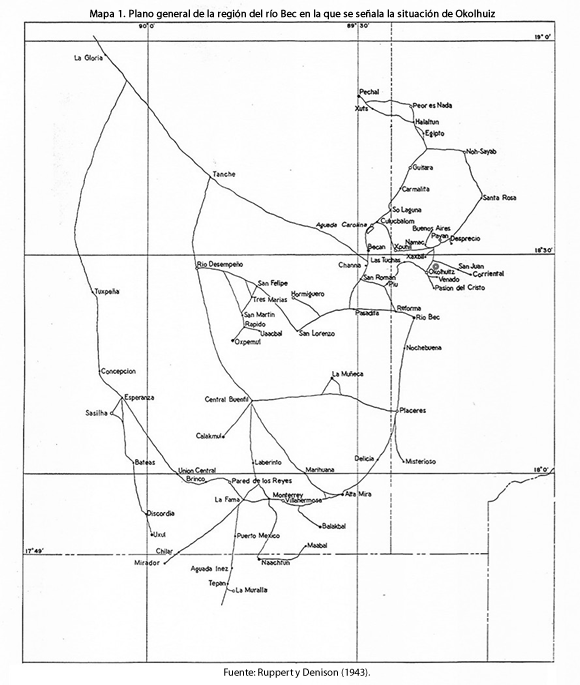 The main objective of this paper is to show the importance of archaeological exploration as a method that would allow us to go beyond the mere knowledge of the distribution of archaeological sites in the Rio Bec region. In this manner, It shows the prospecting work carried out in the archaeological site of Okolhuitz, Campeche, and its results in order to make it possible to move forward with the knowledge and analysis of the settlement pattern in the region in which it is located.